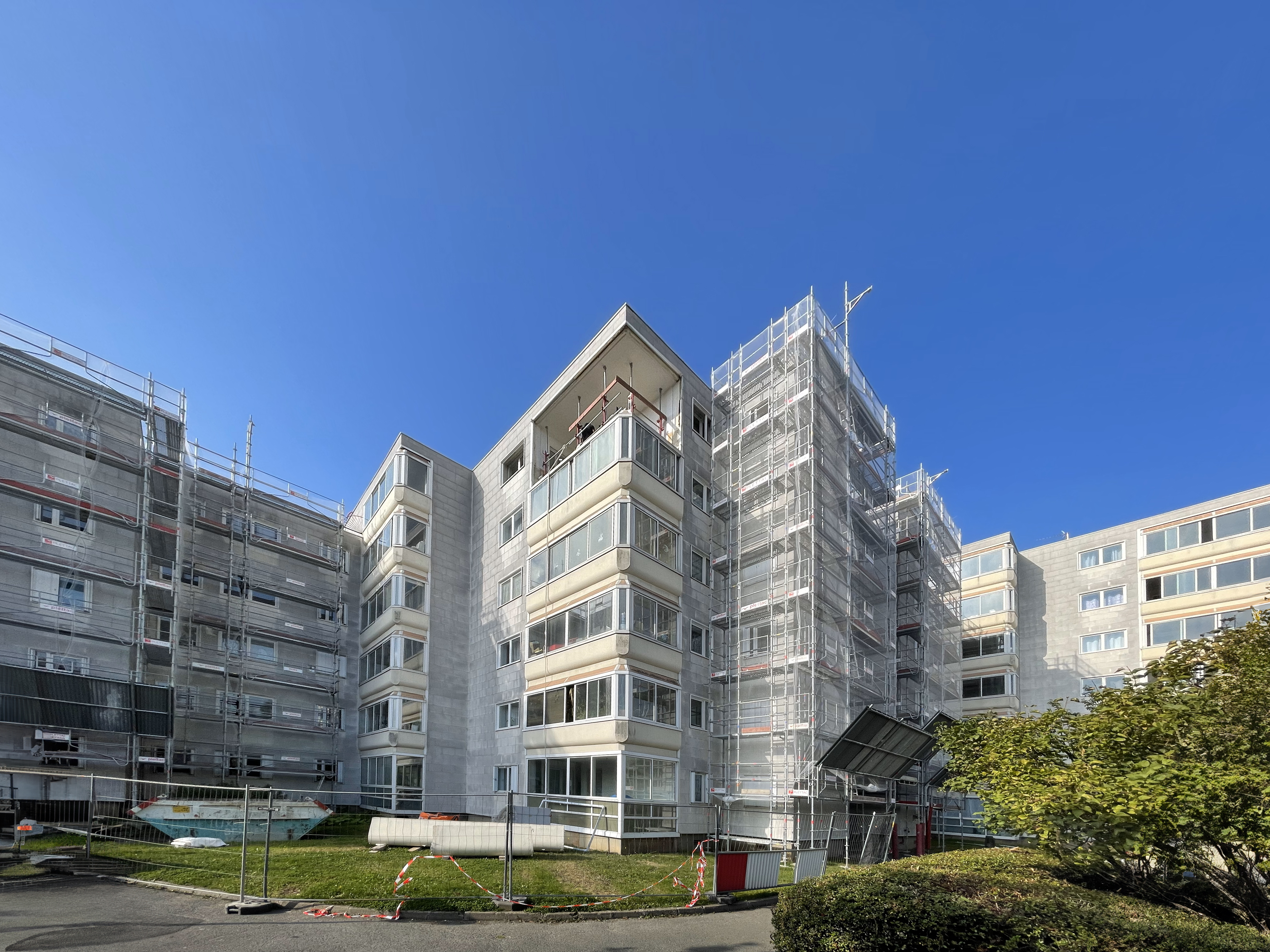 Les travaux avancent bien : la dépose des isolants existants est en cours, ainsi que le curage des loggias, avec notamment la démolition des jardinières en béton. Le logement témoin sera bientôt prêt !