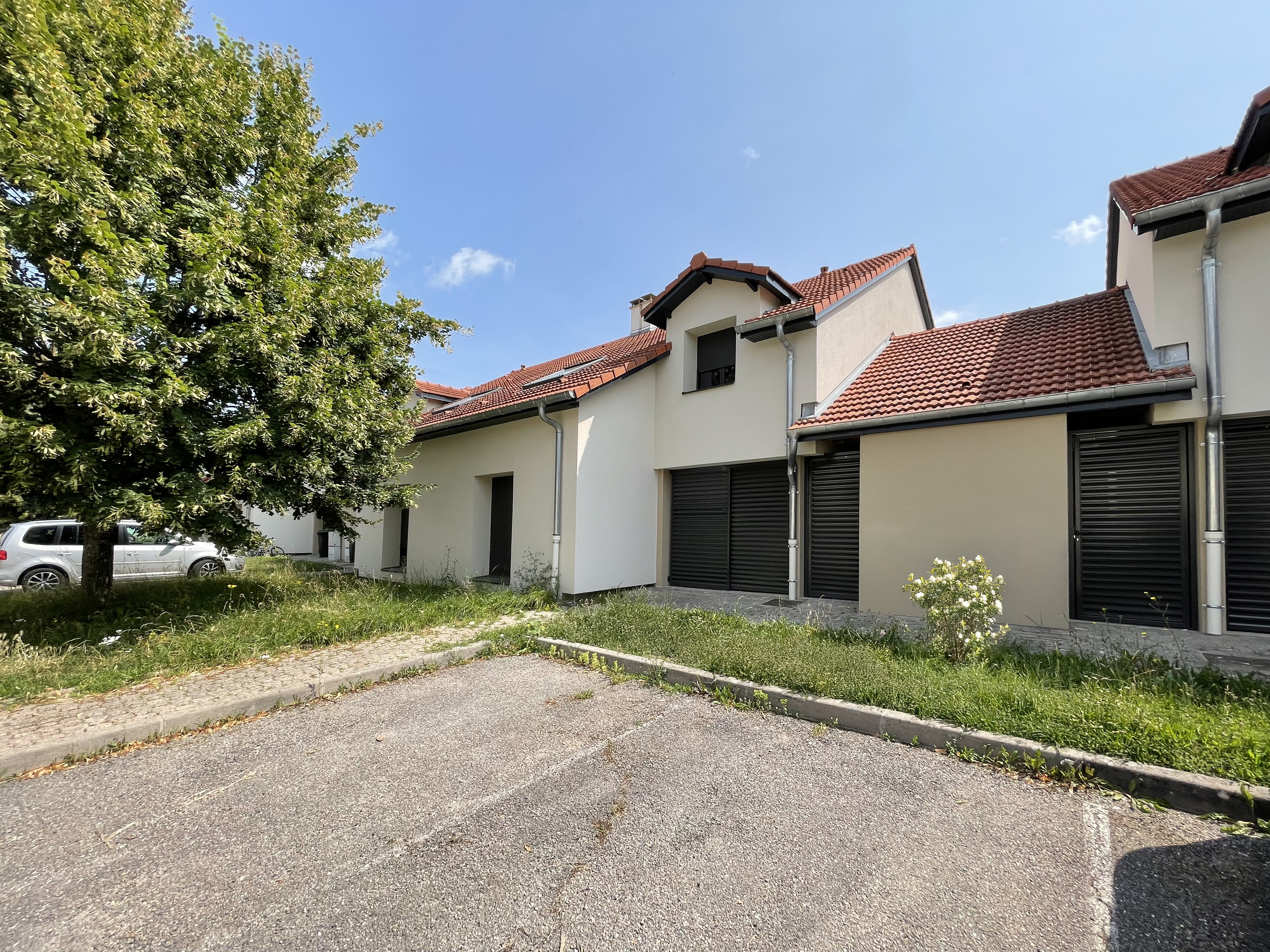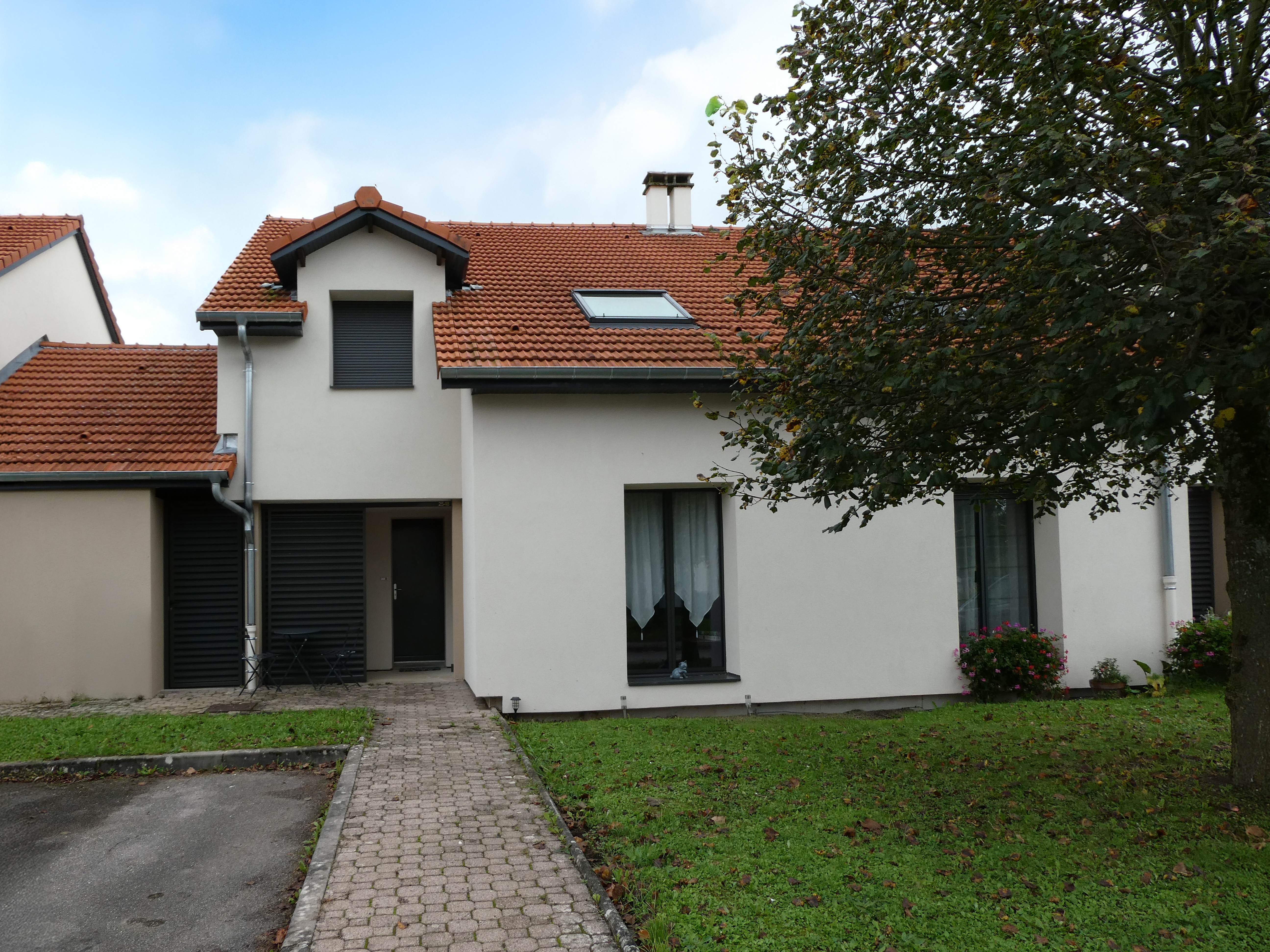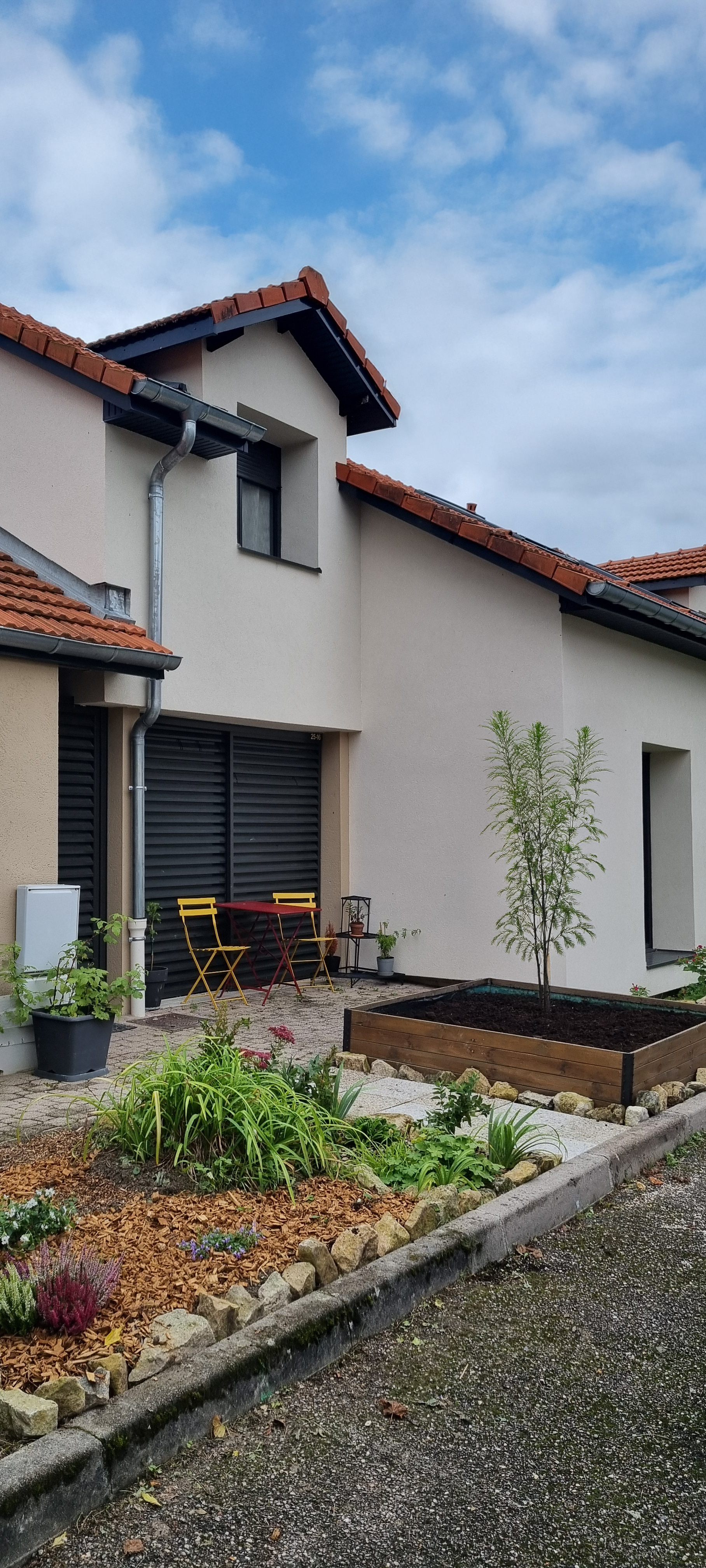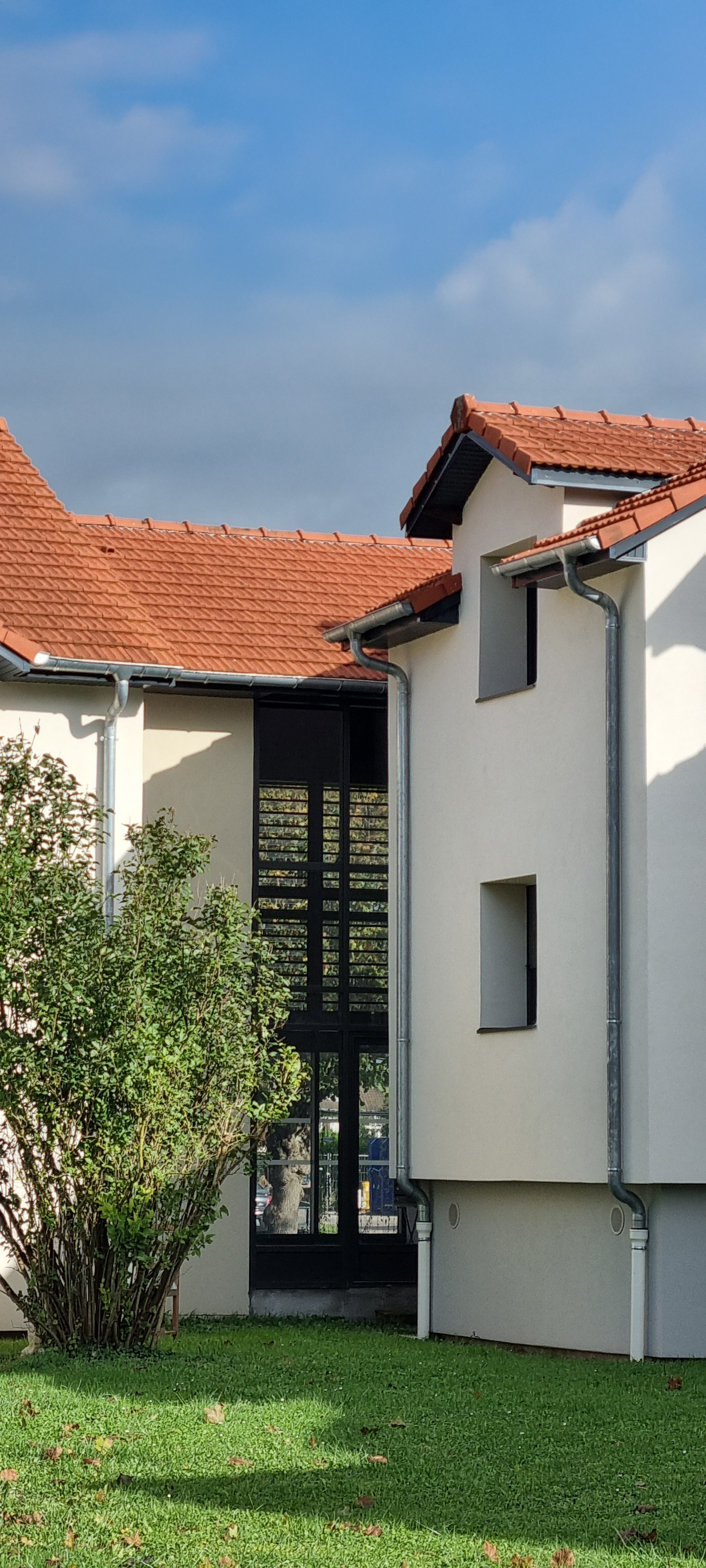 Dans un souci d’uniformisation des entrées en retrait des maisons individuelles, des panneaux coulissants ajourés en aluminium effet bois seront ajoutés.