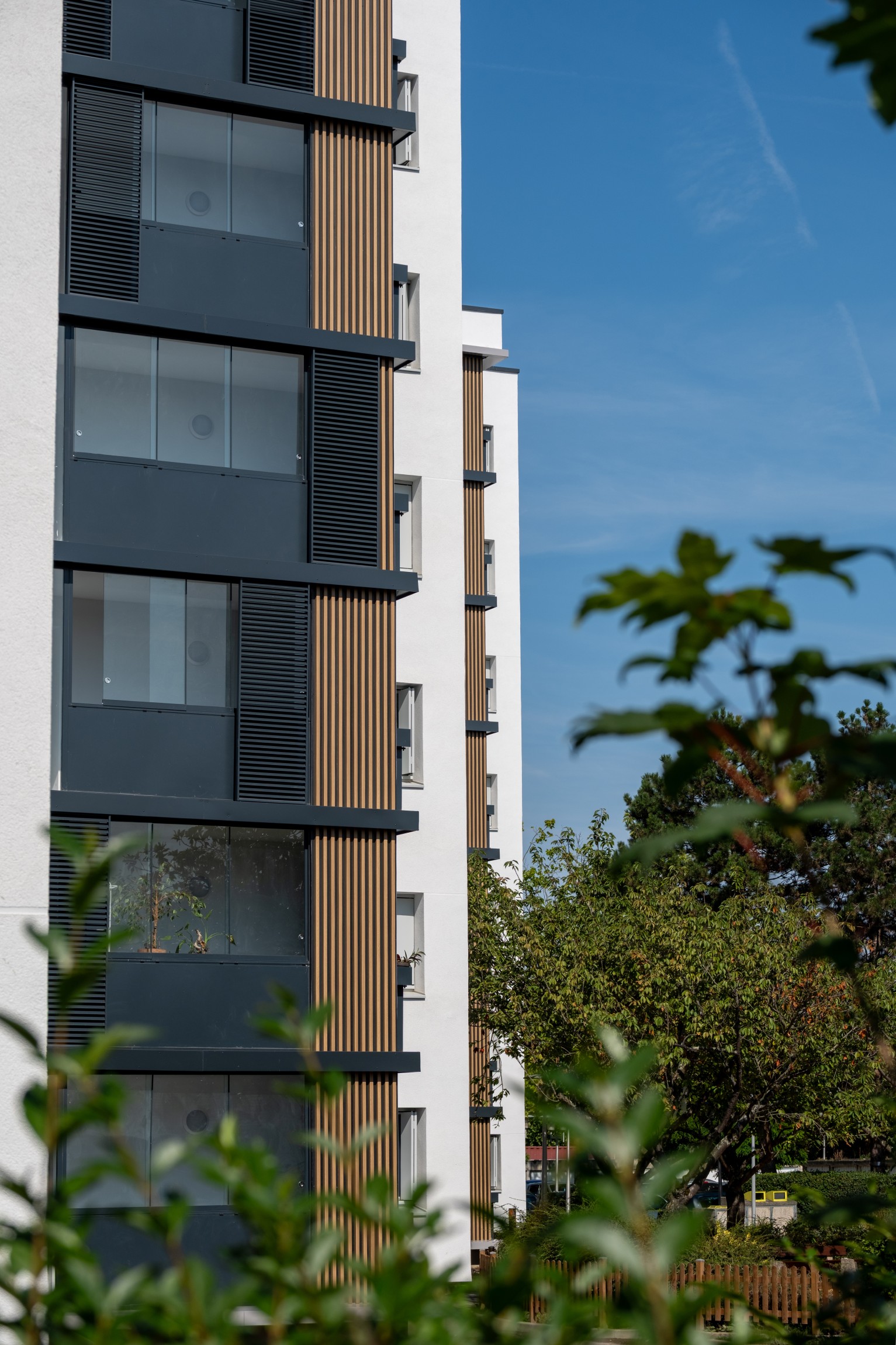 Les façades sont réisolées avec la pose d’une nouvelle ITE et une finition en enduit. L’ensemble des menuiseries extérieures des logements, ainsi que leur système d’occultation, seront remplacés.