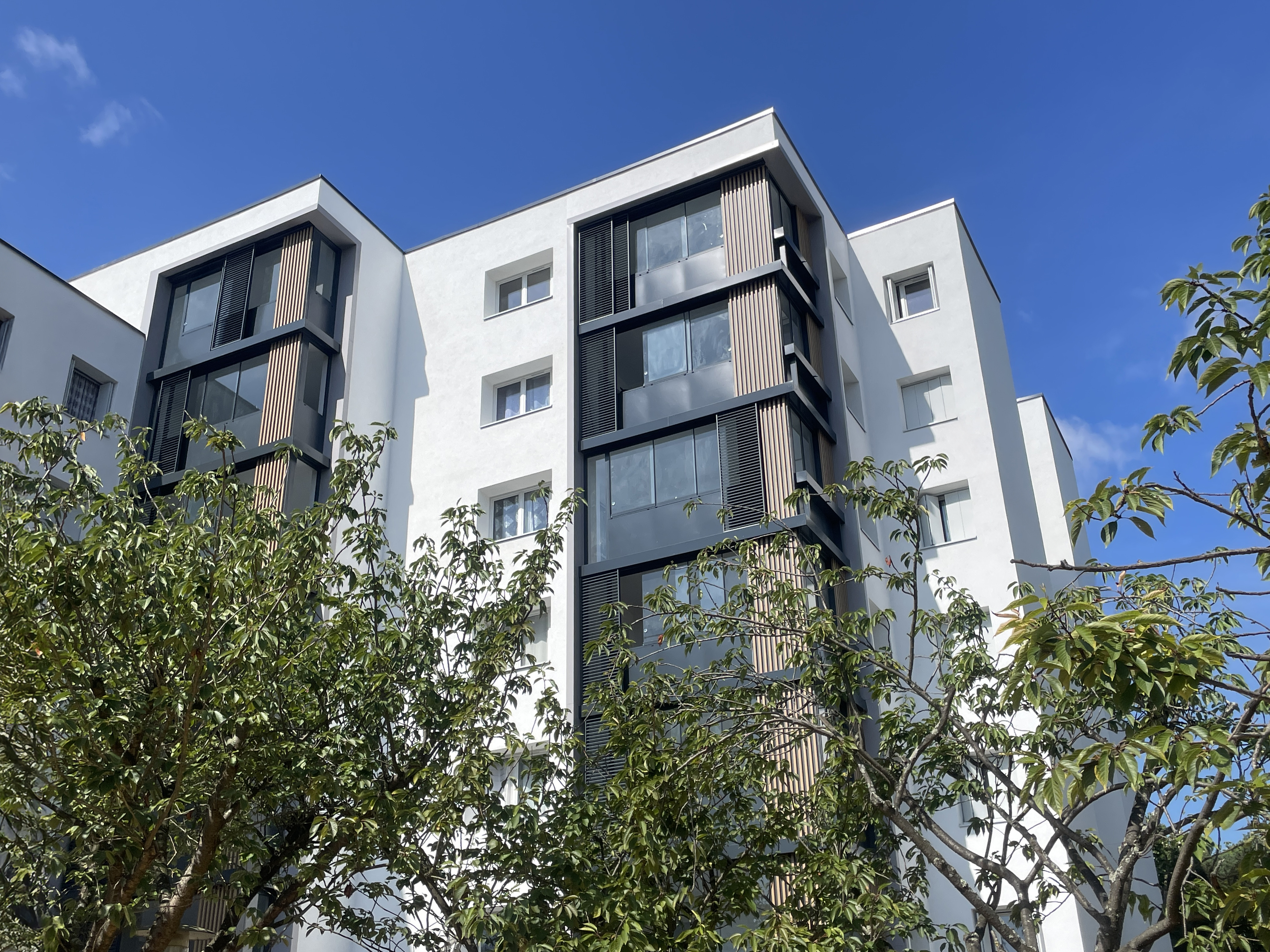 Le projet intègre la redéfinition des loggias, avec un nouveau langage architectural. Elles sont pensées comme des volumes non chauffés mais étanches AEV (air eau vent) : tampon thermique, apport solaire passif.