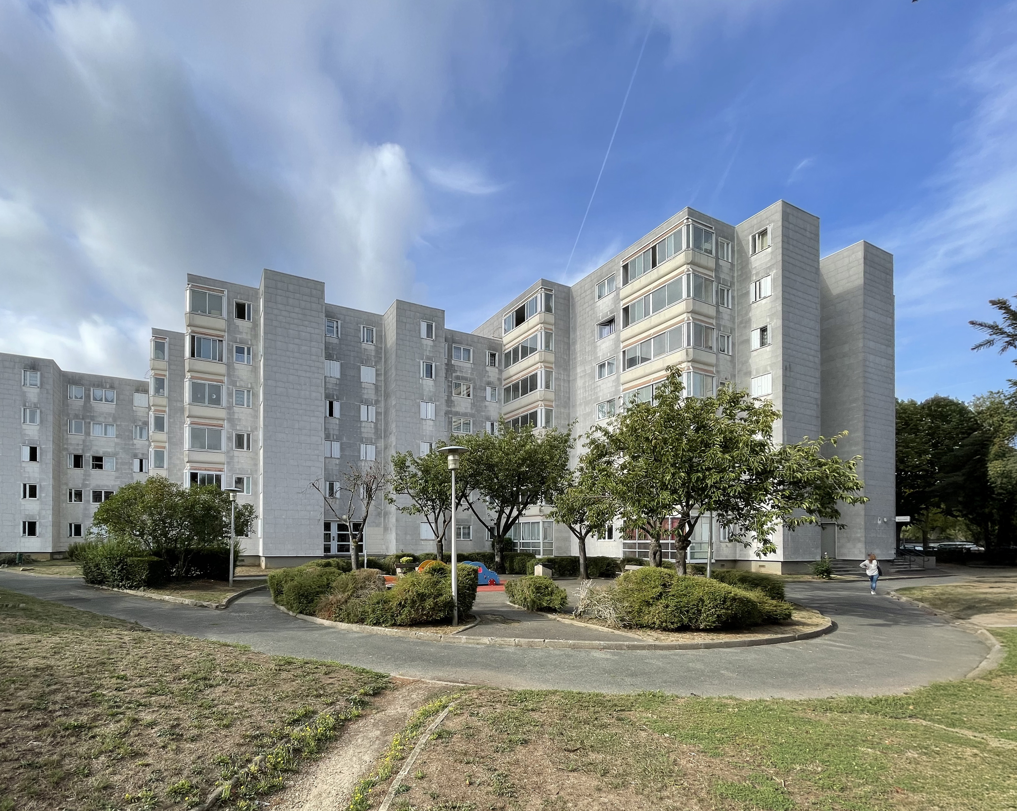 La résidence est un ensemble de quatre immeubles collectifs, avec trois bâtiments liaisonnés et un bâtiment isolé. Leur implantation compacte au cœur de la parcelle offre un cadre de vie de qualité à valoriser.